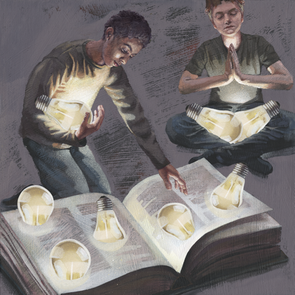 Undervisningen indledes med et besøg i kirken, hvor eleverne via en legende og eksperimenterende tilgang undersøger lyset som både fysisk og religiøst fænomen. I klassen arbejder eleverne i grupper med en række kilder, der beskriver lys i populærkultur, religioner og naturvidenskaben. Kilderne består af tekster, fotos, kunstbilleder og ritualer og er samlet på store arbejdsark i plakatstørrelse. Kildearbejdet munder ud i en lektion, hvor eleverne arbejder med ritualers funktion og opbygning og iscenesætter et fiktivt lystændingsritual.